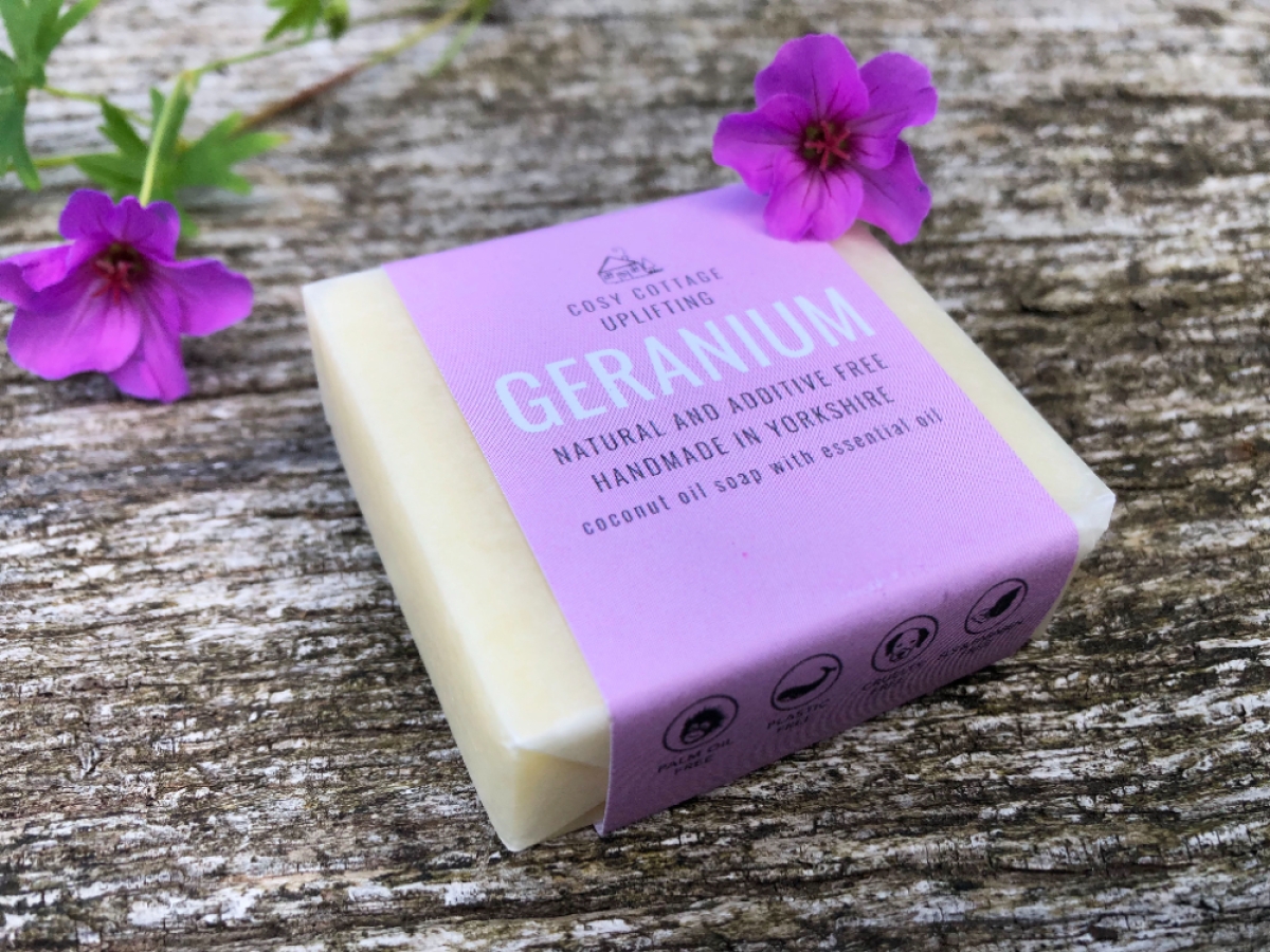 • Handmade heart-shaped bath fizzer infused with uplifting geranium and essential oils (60g)